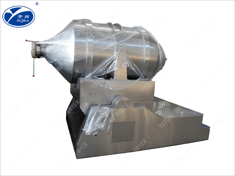 The rotary drum of the EYH two-dimensional mixer can perform two movements simultaneously, one is the rotation of the rotary drum, and the other is the swing of the rotary drum with the swing frame. The mixed material rotates, flips, and mixes inside the drum, while also undergoing left and right back and forth mixing movements with the swinging of the drum. Under the combined action of these two movements, the material is fully mixed in a short period of time. The EYH two-dimensional mixer is suitable for mixing all powder and granular materials.