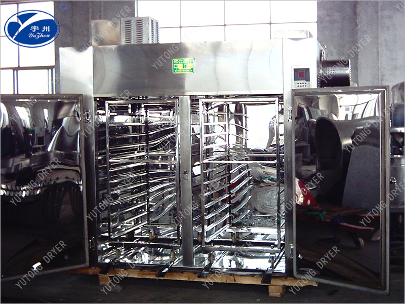 Place the drying tray, bottle, or cart filled with materials into the box, start the PLC programmable control system, and the internal circulation fan will work, heat up, and the butterfly valve will open simultaneously. The drying box will quickly heat up. Under the action of the internal circulation fan, dry and hot air enters the box through a high-temperature resistant filter, and forms a uniform distribution of air under the action of the fine adjustment plate to be transmitted into the box. The dry air absorbs the moisture on the surface of the bottle (material, item), enters the heating channel for evaporation and discharge, and the dry air flows directionally under the action of the fan, while the water vapor is discharged. As the water vapor gradually decreases and fresh filtered air is intermittently replenished, the box is in a slightly positive pressure state, the constant temperature ends, and the process control is completed. Turn on the air supply or (inlet) forced cooling, the automatic butterfly valve enters the closed state, and the sound and light prompt opens the door to release the bottle.