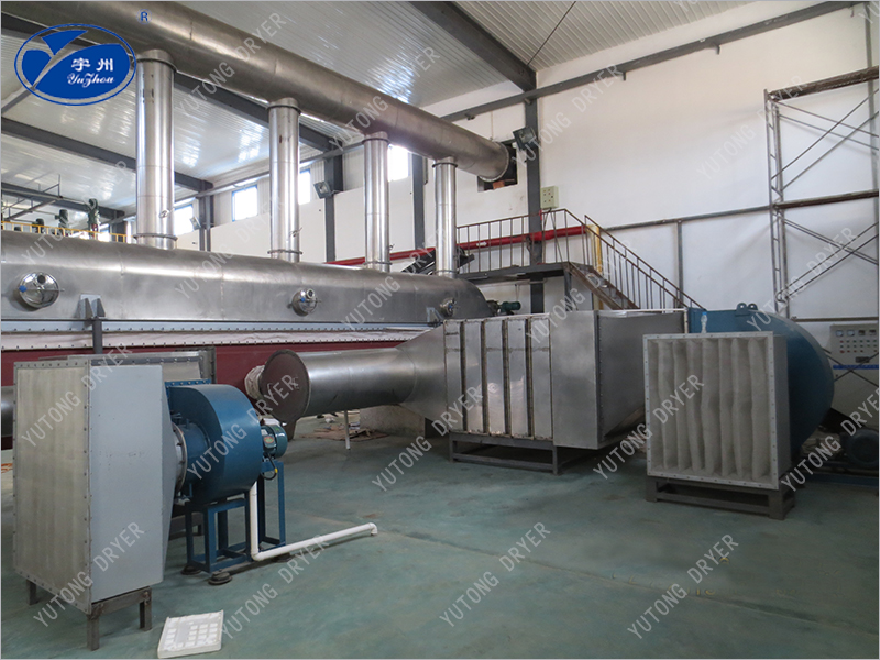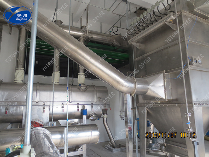 3、由于施加振動(dòng),可使最小流化氣速降低,因而可顯著降低空氣需求量,進(jìn)而降低粉塵層夾帶,配套熱源,風(fēng)機(jī),旋風(fēng)分離器等也可相應(yīng)縮小規(guī)格,成套設(shè)備降低,節(jié)能效果明顯??煞奖愕匾揽空{(diào)整振動(dòng)參數(shù)來改變在機(jī)內(nèi)滯留時(shí)間。其活塞流式的運(yùn)行降低了物料粒度均勻性及規(guī)則性要求,易于獲得均勻的干燥產(chǎn)品。