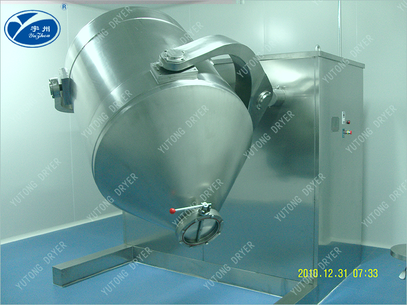 該機(jī)在運(yùn)行中,由于混合桶體具有多方向運(yùn)轉(zhuǎn)動作,使各種物料在混合過程中,加速了流動和擴(kuò)散作用,同時(shí)避免了一般混合機(jī)因離心力作用所產(chǎn)生的物料比重偏析和積聚現(xiàn)象,混合無死角,能有效確保混合物料好的品質(zhì)。結(jié)構(gòu):該機(jī)由機(jī)座、傳動系統(tǒng)、電器控制系統(tǒng)、多向運(yùn)動機(jī)構(gòu)、混合桶等部件組成,與物料直接接觸的混合桶采用不銹鋼材料制造,桶體內(nèi)外壁均經(jīng)拋光。完全符合GMP要求。