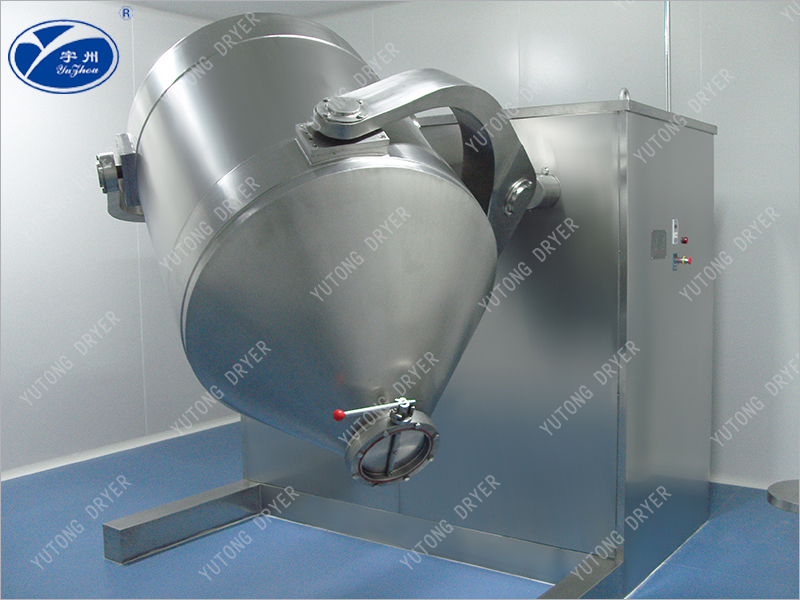 三維運(yùn)動混合機(jī)由機(jī)座、傳動系統(tǒng)、電器控制系統(tǒng),多向運(yùn)動工機(jī)構(gòu),混合桶等部件組成,與物料直接接觸的混合桶采用不銹鋼材料制造,桶體內(nèi)外壁均經(jīng)拋光。