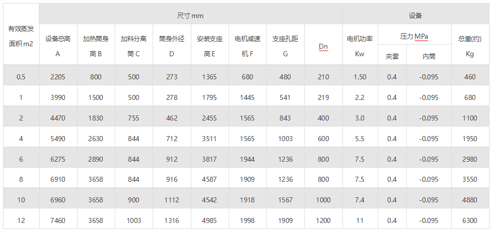 2.表重D表示夾套外徑,Dn表示蒸發(fā)筒體的內(nèi)徑;