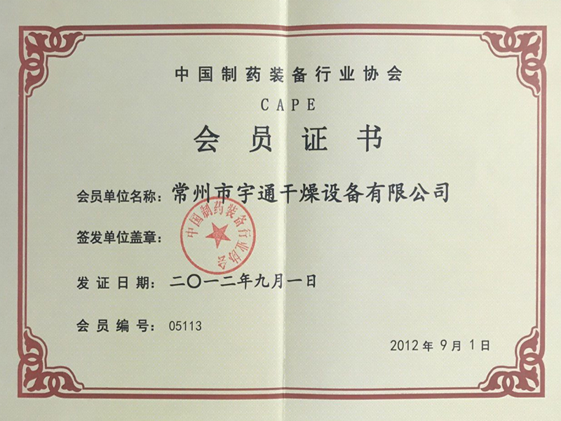 制藥行業(yè)會員證書
