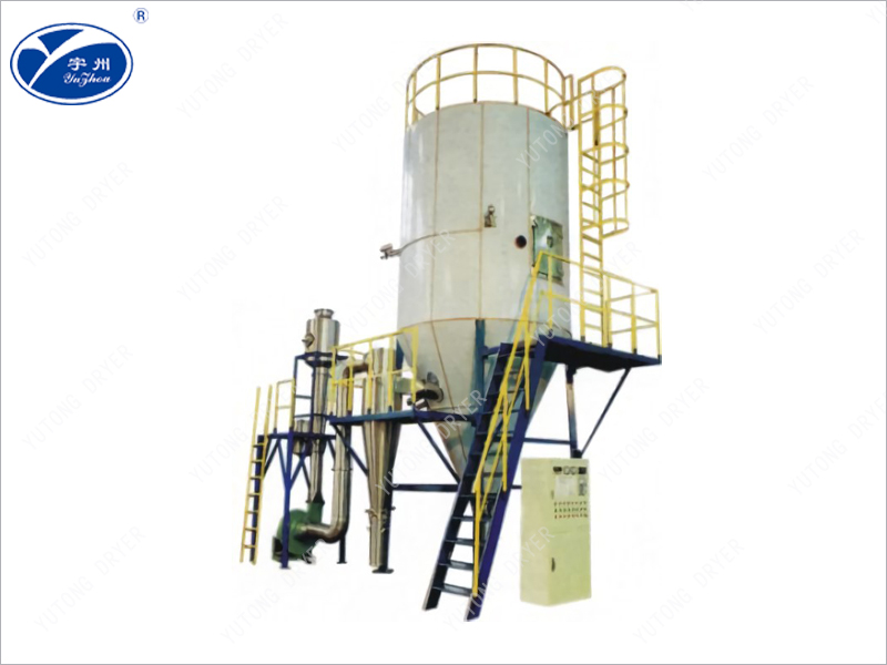 潔凈空氣加熱后進(jìn)入干燥塔,在塔內(nèi)熱風(fēng)中用二流體(或三流體)噴嘴將各種料液物化成微小液滴,與熱風(fēng)進(jìn)行快速熱交換,蒸發(fā)掉液料中的水份(或溶劑),并隨熱風(fēng)排出,得到粉狀產(chǎn)品。