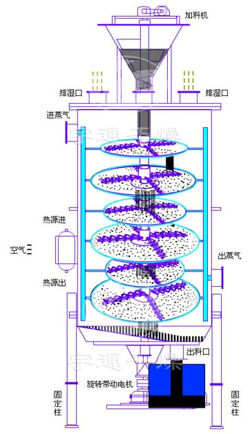 每層干燥盤(pán)皆可單獨(dú)通入熱介質(zhì)或冷介質(zhì),對(duì)物料進(jìn)行加熱或冷卻,物料溫度控制準(zhǔn)確、容易。