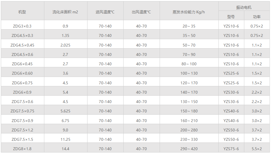 ZDG系列振動流化床干燥機(jī)廣泛適用于化工、輕工、醫(yī)藥、食品、塑料、糧油、礦渣、制鹽、糖等行業(yè)的粉料顆粒狀物料的干燥、冷卻、增濕等作業(yè)。