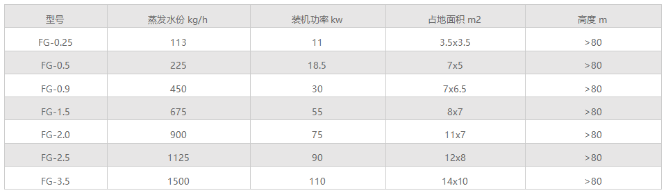 1、干燥強(qiáng)度大,設(shè)備投資省,蒸發(fā)能力大,可從50kg?H2O/h~2000kg?H2O/h。