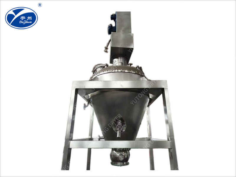 2、頂部驅(qū)動(dòng),設(shè)備在進(jìn)料、干燥、混合、出料工藝過程中與外界空氣無接觸,無泄漏,無死角。