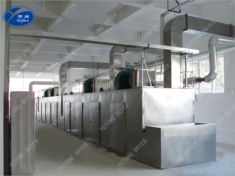 用于透氣性較好的片狀、條狀、顆粒狀物料的干燥,對于脫水蔬菜、中藥飲片等含水率高、而物料溫度不允許高的物料尤為合適;該系列干燥機具有干燥速度快、蒸發(fā)強度高、產(chǎn)品質量好的優(yōu)點。對于脫水濾餅的膏狀物料,需經(jīng)造粒或制成棒狀后亦可干燥。