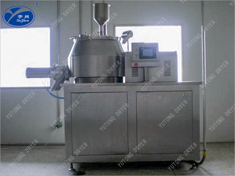 粉體物料與粘合劑在圓筒形容器中由底部混合漿充分混合成濕潤(rùn)軟材,然后由側(cè)置的高速粉碎槳切割成均勻的濕顆粒。