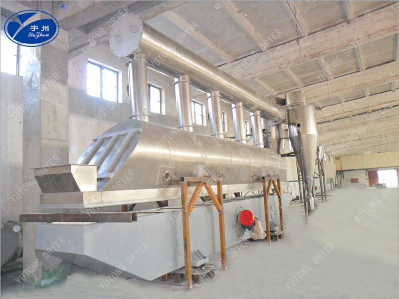 Материал поступает в машину через входное отверстие и прыгает вперед на распределительной панели воздуха под действием ударной силы, обеспечиваемой вибрационным двигателем или другим устройством. В то же время воздух фильтруется и нагревается до определенной температуры, проникая через вентиляционные отверстия в нижнюю газовую камеру сушилки. При двойном действии вибрационной силы и равномерного воздушного потока через распределительную пластину воздуха материал взвешивается и контактирует с потоком тепла. Частицы материала и тепловые среды испытывают сильную турбулентность, которая усиливает процесс теплопередачи. Высушенные продукты выбрасываются из выходов, испаренная вода и выхлопные газы рекуперируются циклонными сепараторами и выбрасываются в атмосферу после сбора пыли. Постельное тело обеспечивает стабильную газовую камеру с определенным давлением для слоя кровати. отрегулируйте вентилятор, чтобы верхняя часть материала верхней коробки поддерживала небольшое отрицательное давление, поддерживала хорошую сухую среду, предотвращала утечку пыли.