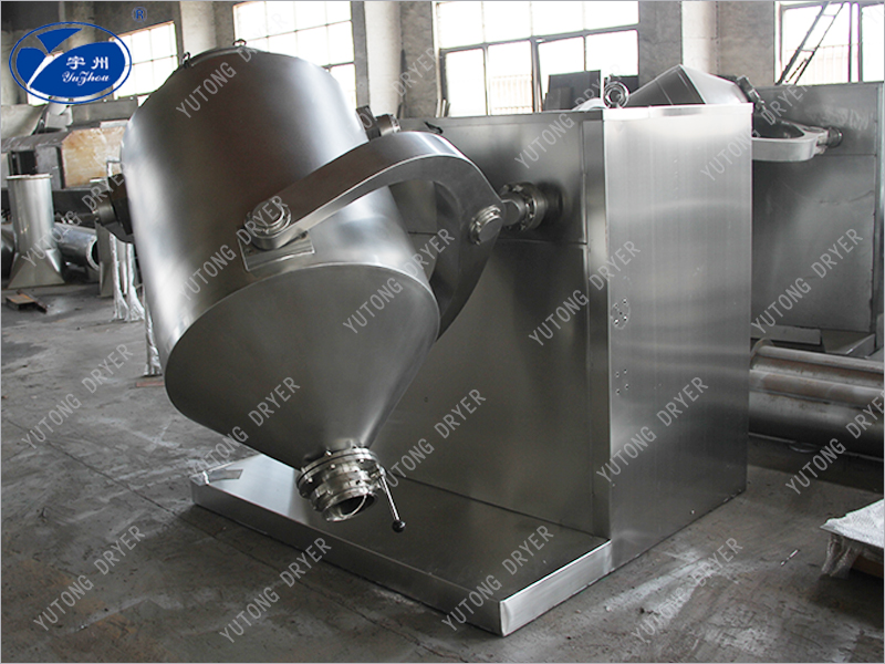 Во время работы смеситель имеет многонаправленное движение, которое ускоряет поток и распространение различных материалов в процессе смешивания. В то же время он избегает сегрегации плотности материала и накопления, вызванных центробежными силами в обычных смесителях. Смешивание не имеет мертвого угла, может эффективно гарантировать хорошее качество смеси. Конструкция: Машина состоит из основания, трансмиссии, электрической системы управления, механизма многонаправленного движения, мешалки и других компонентов. Барабан для перемешивания, находящийся в непосредственном контакте с материалом, изготовлен из нержавеющей стали, а внутренняя и внешняя стенки барабана полированы. Полностью соответствует требованиям GMP。