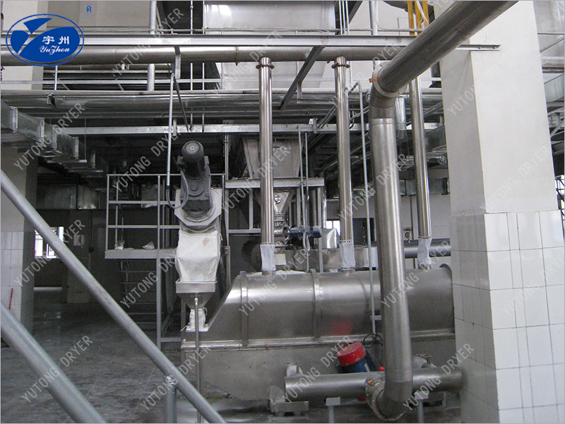 Частичные твердые материалы подаются питателем в сушилку с псевдоожиженным слоем, фильтрованный чистый воздух нагревается и подается воздуходувкой на дно псевдоожиженного слоя, контактируя с твердым материалом через распределительную пластину, образуя поток и осуществляя обмен газопоглощающим теплом. Когда материал высыхает, он высвобождается из выпускного отверстия, а выхлопные газы высвобождаются из верхней части псевдоожиженного слоя через группу циклонных пылеуловителей и мешковых пылеуловителей, а твердый порошок сбрасывается после рекуперации. Паровые, электрические и тепловые печи могут быть оборудованы (в соответствии с требованиями пользователя).Применяется к сухим гранулированным материалам, таким как фармацевтическое сырье, таблетированные частицы, частицы китайской медицины, пластиковые смолы в химическом сырье, лимонная кислота и другие порошкообразные и гранулированные материалы. Он также используется для сушки и увлажнения гранул пищевых продуктов и напитков, обработки зерна, зародышей кукурузы, кормов и т. Д. Размер зерна материала может достигать 6 мм, предпочтительно 0,5 - 3 мм.