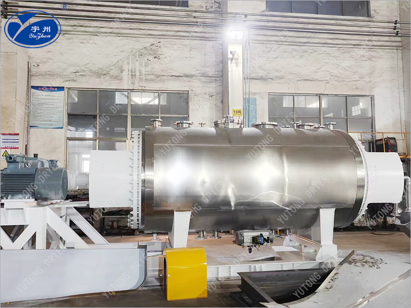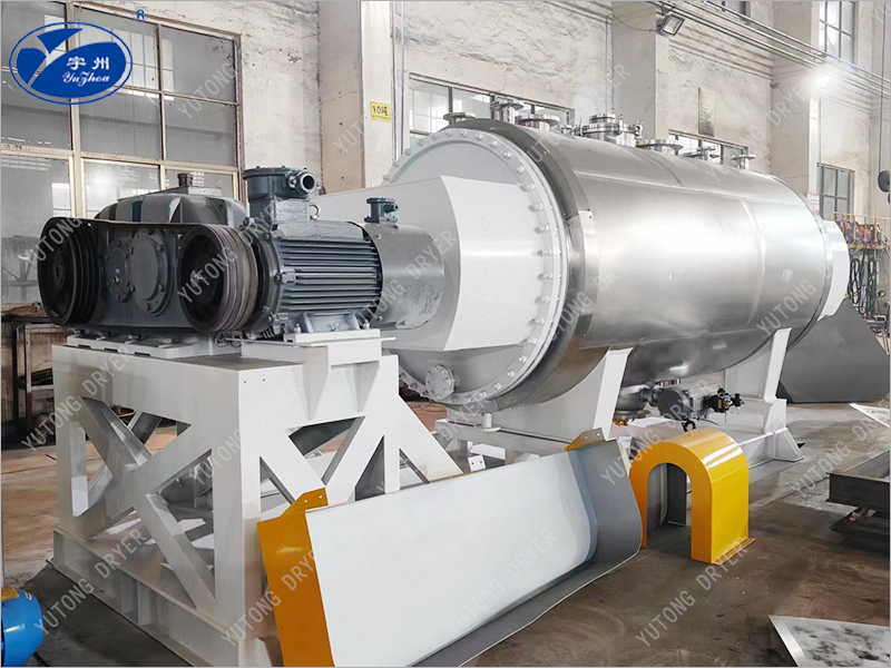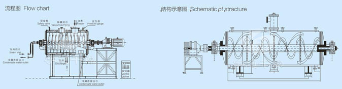 Эта машина представляет собой новый тип горизонтального прерывистого вакуумного сушильного оборудования. Влажный материал испаряется через проводимость и оснащается скребковым блендером, чтобы непрерывно удалять материал с внутренней стенки и перемещать его по контейнеру, образуя циркулирующий поток. После испарения вода откачивается вакуумным насосом.