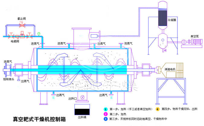 (5)Удобное в эксплуатации: вакуумная бороновая сушилка удобна в эксплуатации, требования к персоналу низкие, трудоемкость низкая. Улучшились санитарно - гигиенические условия благодаря сокращению потерь в результате утечки материалов. Основным недостатком вакуумной сушки грабли является сложная структура и высокая стоимость. Из - за прерывистой эксплуатации, длительное время сушки, низкая производительность; Из - за трудностей с очисткой, производство не должно часто переключаться на сорта. В то же время для обеспечения вакуума необходимо регулярное обслуживание и ремонт вакуумных установок.