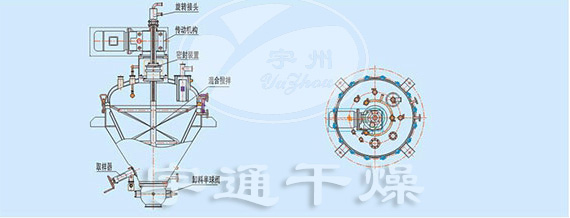 2、Верхний привод, оборудование в процессе подачи, сушки, смешивания и выхода не контактирует с внешним воздухом, нет утечки, нет мертвого угла.