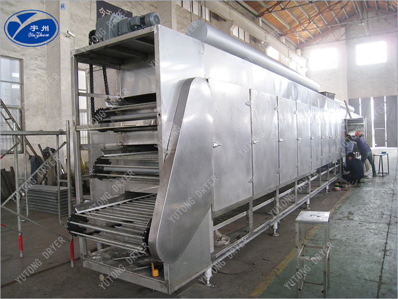 2、Материалы этой серии ленточных сушилок распределены по сетке из нержавеющей стали, а горячий ветер проходит снизу вверх через материал на ленте. Теплообмен равномерный и адекватный, высокая производительность, хорошее качество продукции. Он оснащен холодным мобильным слоем и вращающимся выравнивающим устройством с низкой температурой выбросов, что способствует своевременной упаковке.