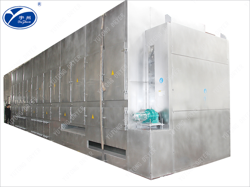 1、Характеристики этой серии ленточных сушилок включают в себя достижение передового внутреннего уровня в области проточного нагрева, стратифицированного впуска, сегментной сушки с переменной температурой и рекуперации отработанного тепла。