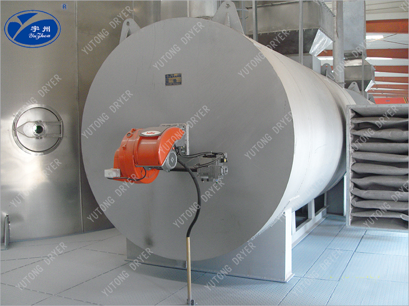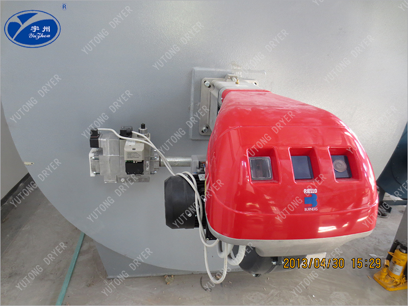 Топливо образует высокотемпературный газ при сгорании в горелке. С помощью тепловой печи с усиленным теплообменом тепло высокотемпературного газа передается в нагретый воздух. После рассеивания тепла температура высокотемпературного газа падает до 250°C и выбрасывается в атмосферу. Воздух, требующий нагрева, принудительно подается в тепловую печь через факультативную воздуходувку. После поглощения тепла температура поднимается до номинального значения и отправляется от выхода горячего воздуха. Когда температура горячего воздуха достигает номинального потолка температуры, горелка автоматически прекращает горение или переключается на небольшое пламя. Когда температура горячего воздуха падает до нижнего предела номинальной температуры, горелка снова зажигает или переключается на высокое пламя. Скорость нагрева можно регулировать путем регулирования открытия входного клапана.